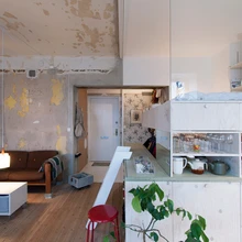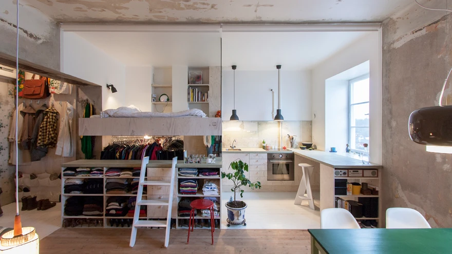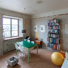 36 m2 suuruses korteris kohtuvad kaks ajastut: moodne ja viimistletud ning kulunud, möödunud aegu meenutav kihistus. | foto: Karin Matz2012. aastal tuli Stockholmis Heleneborgsgatani tänaval müüki korter, mis oli kolmkümmend aastat seisnud tühjana ja toiminud mööblilaona. Kui arhitekt Karin Matz esimest korda räämas ruumidesse sisenes, oli aeg seal justkui seisma jäänud.