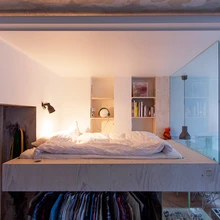 Kui uue viimistlusega osas on kõik tänapäevaselt integreeritud, tehnosüsteemid peidetud ja mööbel sisseehitatud, siis teises korteri pooles on kõik vastupidi. Seal jooksevad juhtmed piki seinu ja lage ning mööbel koosneb n-ö lahtistest elementidest. Erandiks on seinale kinnitatud Stringi raamaturiiul.