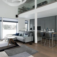 Lagede kõrgus, avatud planeering ja maast laeni aknad muudavad ruumi suursuguseks ja õhuliseks, nõudes ka mööblilt suuri ja julgeid vorme. | foto: Terje UgandiSisearhitekt Aet Piel kutsuti värskendama ja nüüdisajastama Tallinna külje all Tiskre elurajoonis asuva maja sisekujundust. Ajale veidi jalgu jäänud interjöör sai valgusküllase, väljapeetud ja moodsa ilme.