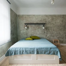 Kui korteri seinad-laed-põrandad on restaureeritud ja kaetud looduslike värvidega, siis sisustus on enamjaolt vastukaaluks moodne. Siinkohal langes valik Ikea kasuks – sealt on pärit nii metallist köögimööbel, keraamilised valamud kui ka voodi. Elutoariiulid ja köögikapid valmistas puussepp Uno Õunapuu arhitekt Tiit Silla jooniste järgi. Elutoamööbel on ostetud Rootsi vanakraamioksjonilt.