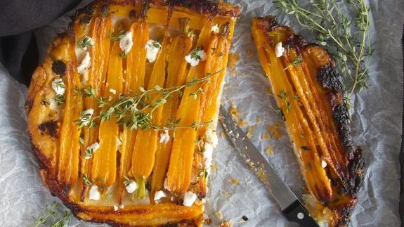 Pirukas tuleb ilus ja värviline, kui kasutada eri värvi porgandeid....